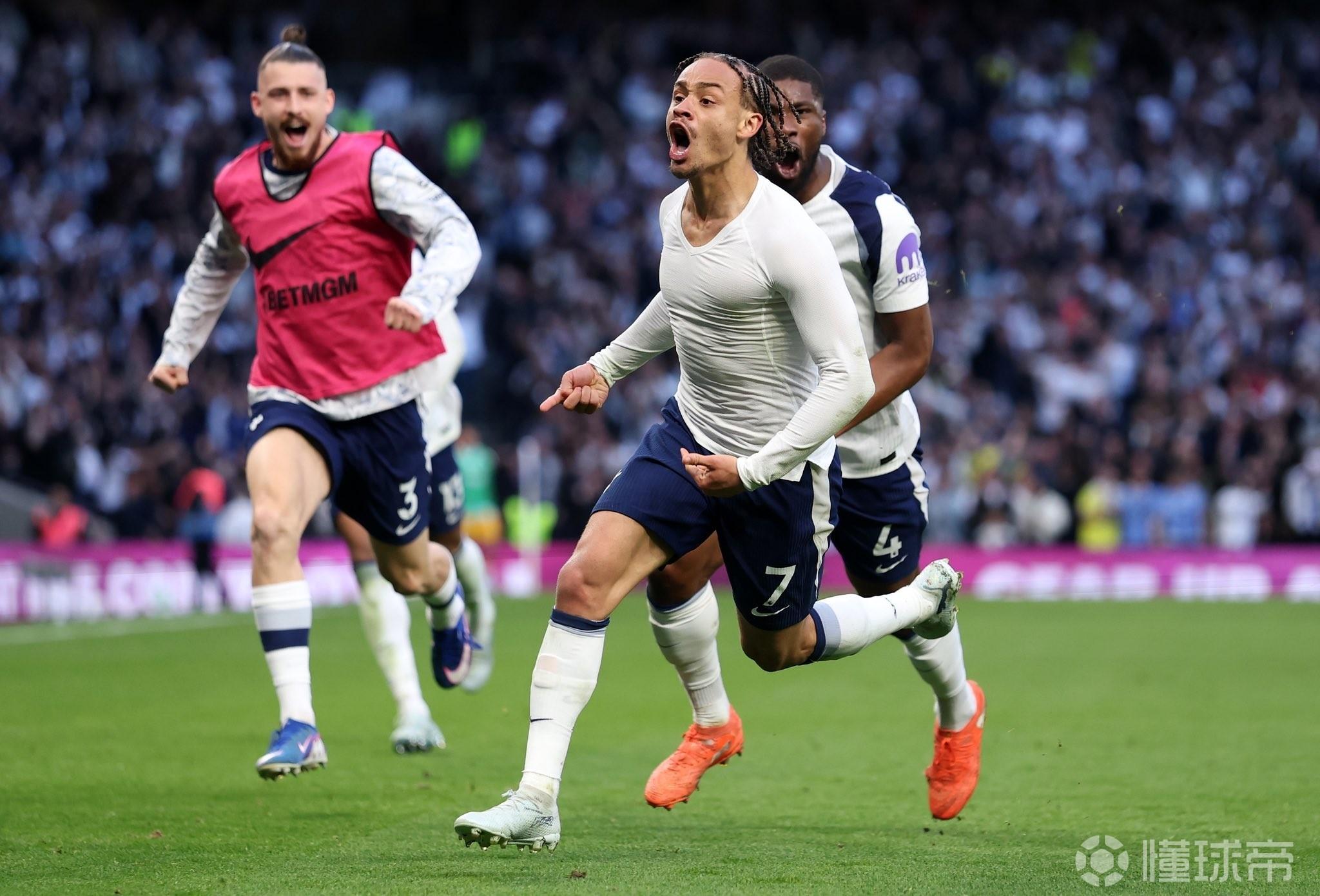 下半场,哈维-西蒙斯在第77分钟打进一记世界波,帮助热刺再度取得领先,在进球后,哈维-西蒙斯兴奋地脱衣庆祝,结果在下半场补时阶段,丹索失误被抢断,吕特打进绝平球。